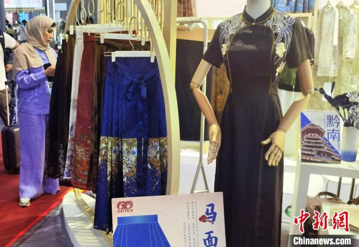 广东省纺织品进出口股份有限公司带来让人眼前一亮的马面裙,吸引来自东南亚、中东、南美和非洲等地区的采购商询盘。