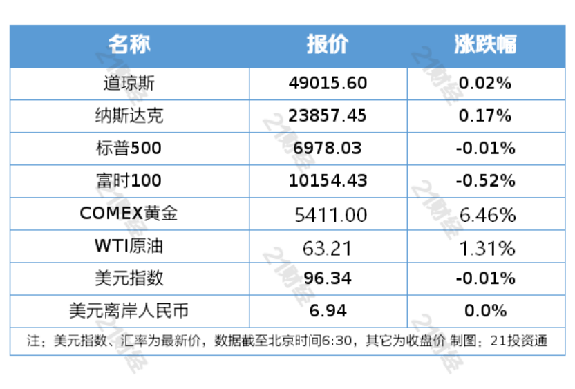 隔夜外盘